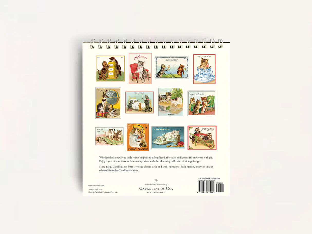 Un calendario de mesa estilo vintage con preciosas ilustraciones de gatos.