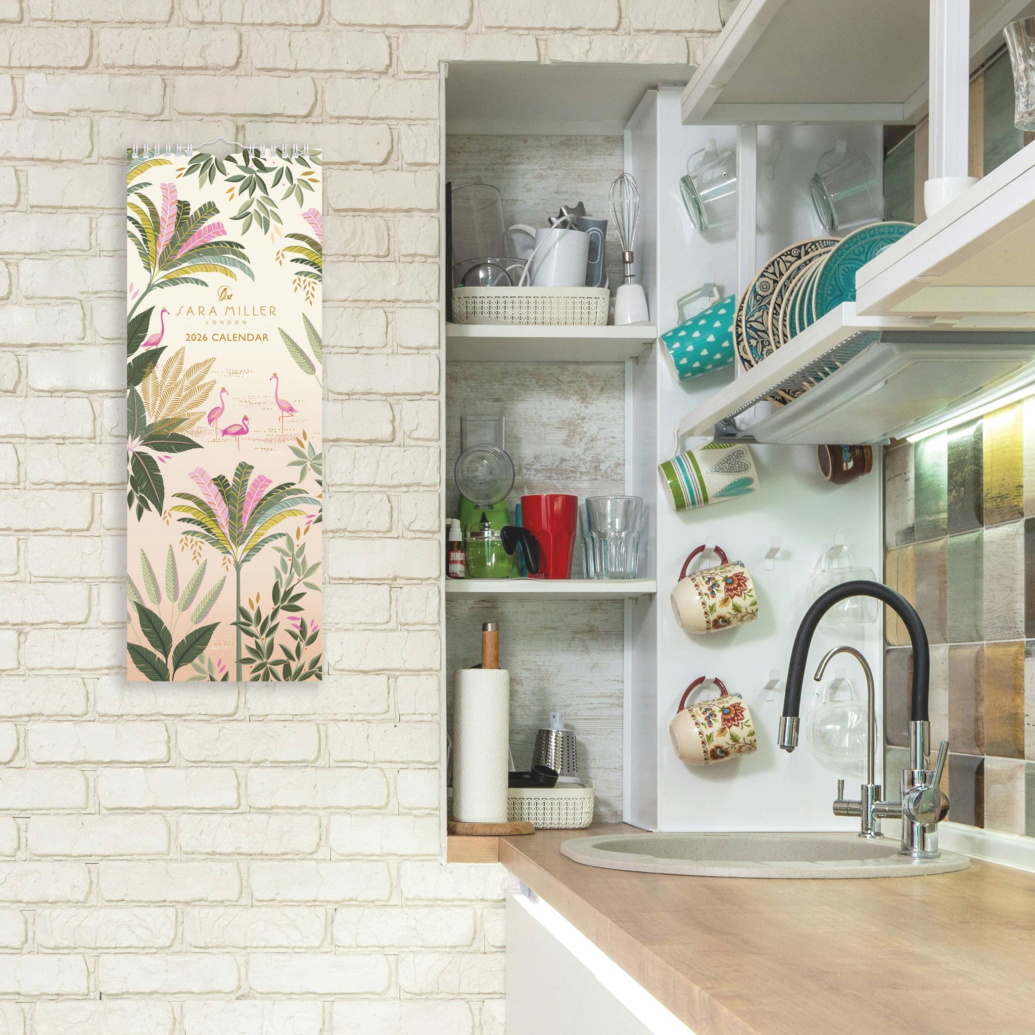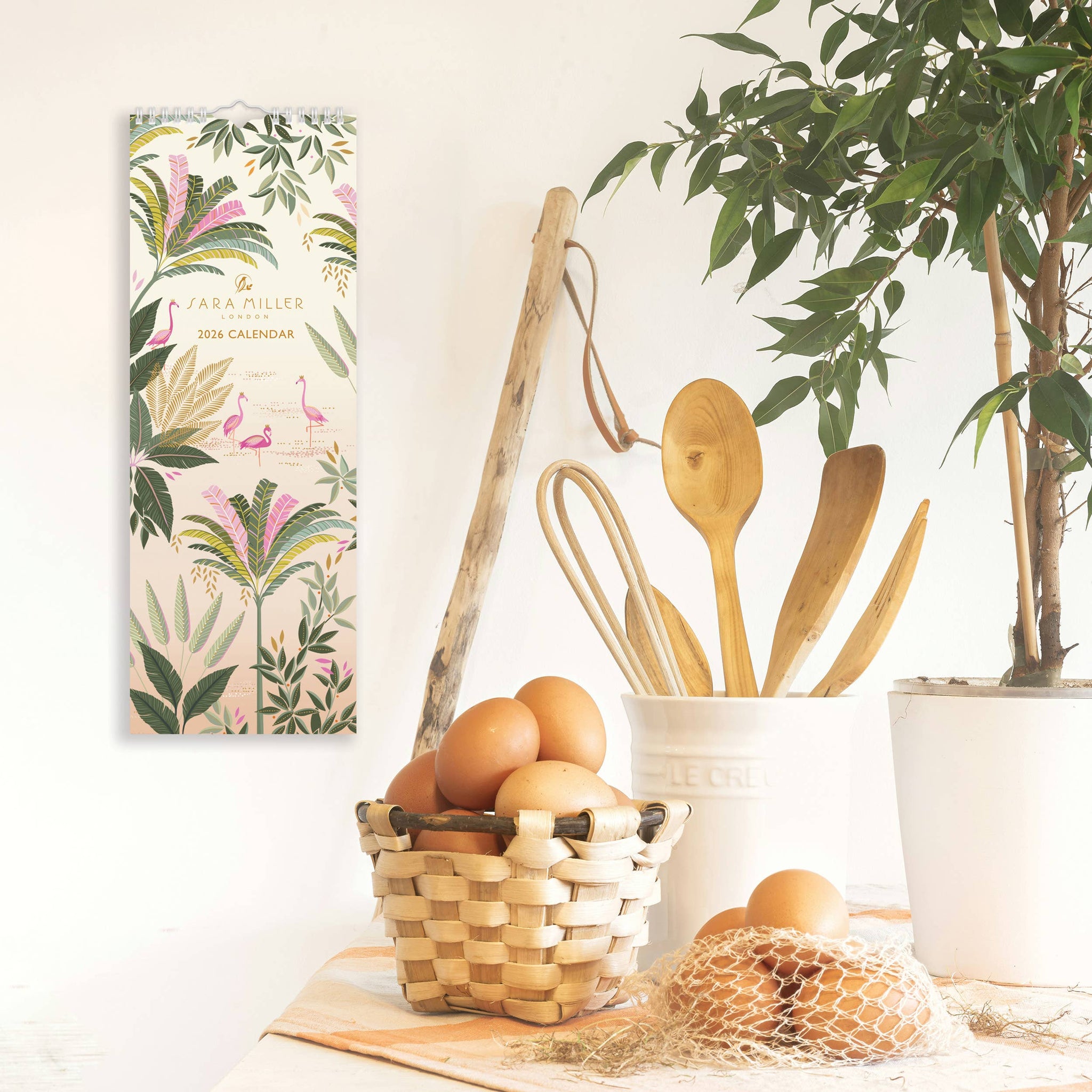 Calendario delgado Sara Miller 2026. Hermosa obra de arte de la marca de estilo de vida de lujo Sara Miller London, con estampados distintivos de la colección Haveli Garden. Cubierta con acabado metalizado.