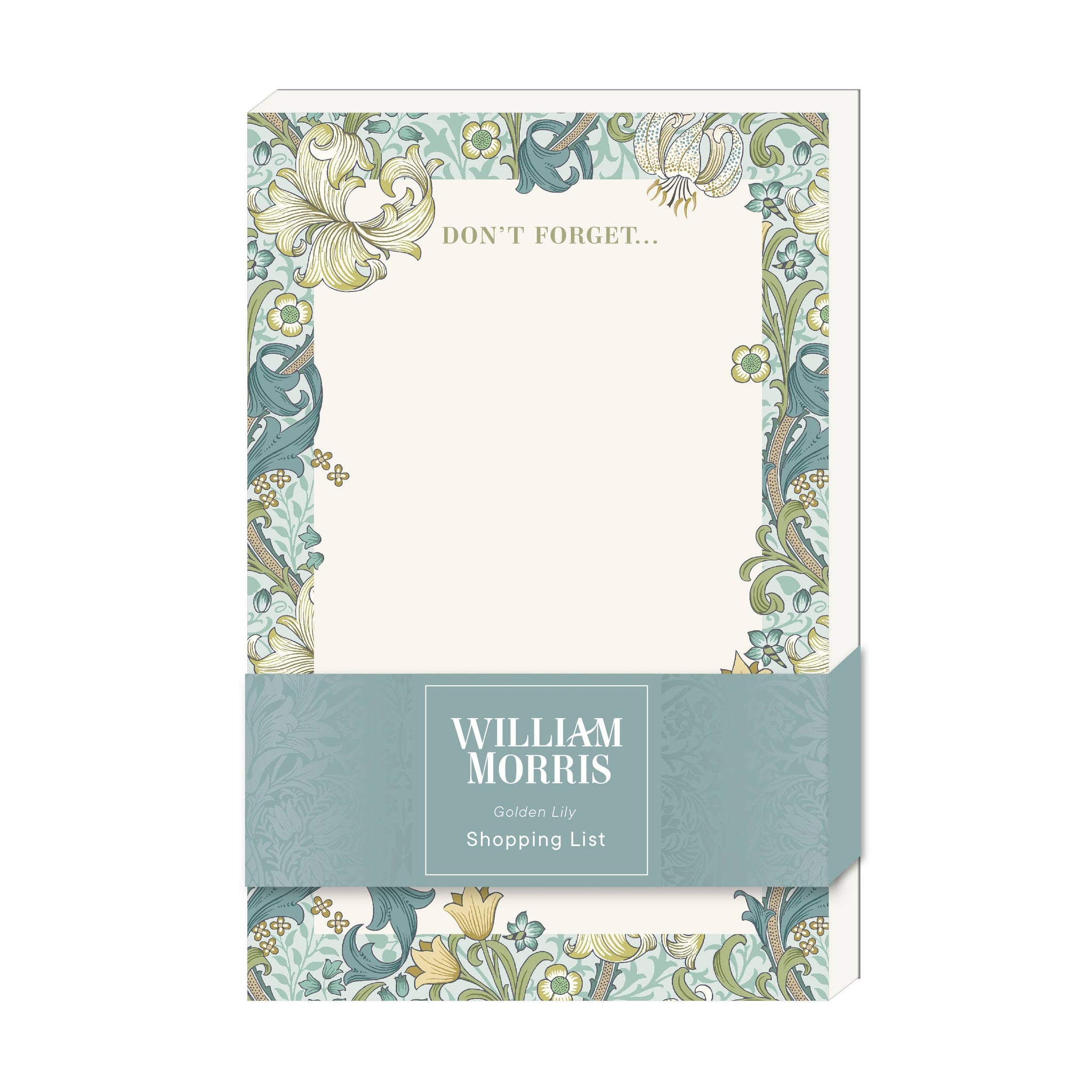 Organízate sin esfuerzo con esta lista de compras desprendible de 80 páginas, adornada con un patrón adaptado del papel tapiz Golden Lily para Morris & Co.