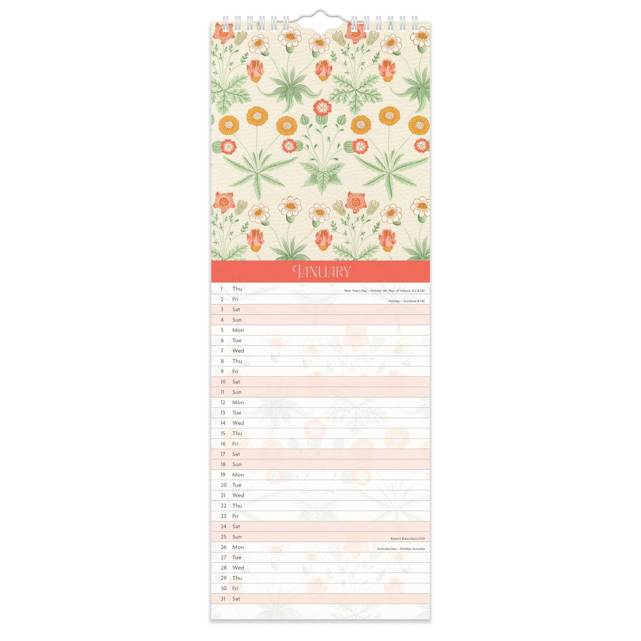 Calendario de pared delgado William Morris 2026 de Portico Designs Ltd., una reconocida marca británica que encarna la elegancia atemporal del diseño Arts and Crafts. Diseños históricos que datan del siglo XIX.