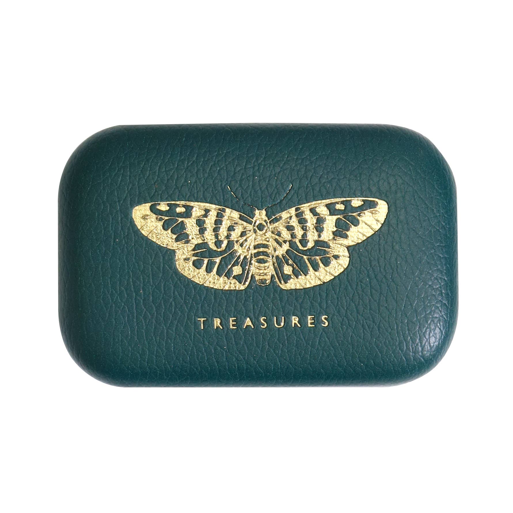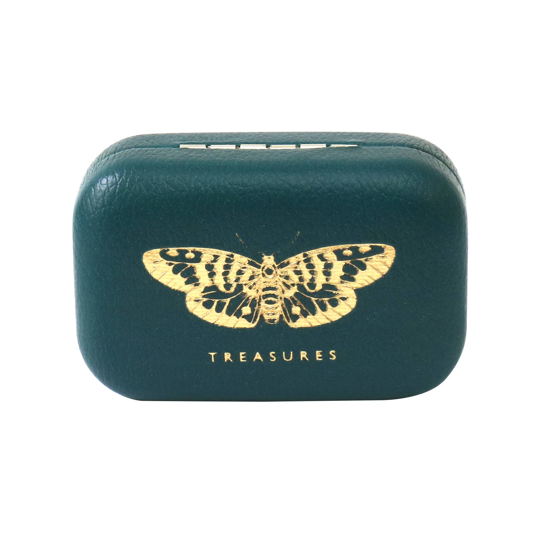 Mantén todos tus tesoros seguros durante el viaje con este estuche rígido para joyas. En piel sentética con una bonita mariposa dorada.